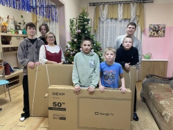 Поддержал веру в Новогодние чудеса Низамов Данил Владимирович, который в настоящее время является участником специальной военной операции (СВО).Данил проявил свою доброту и заботу, порадовал воспитанников Центра сладкими подарками, большим современным телевизором и саундбаром.